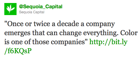 Sequoia Capitalは公式Twitterで「10年に1度か2度、すべてを変える企業が登場する。Colorはそんな企業だ」と述べている。